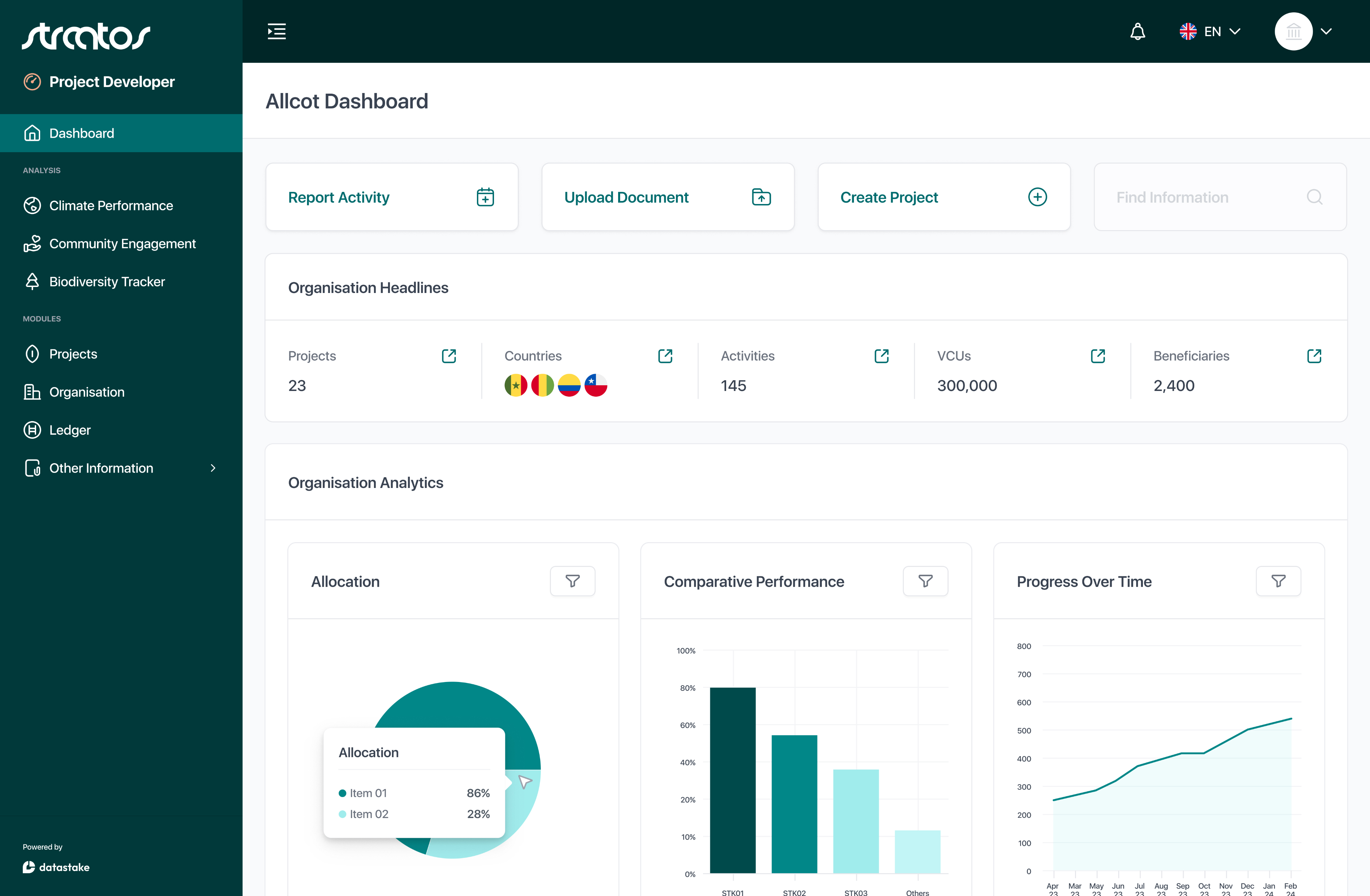 Straatos is a digital infrastructure for environmental and carbon projects. It supports the full lifecycle of climate action — from field data collection to credit issuance — ensuring that every data point is traceable, verifiable, and fair. Built for integrity, designed for inclusion.