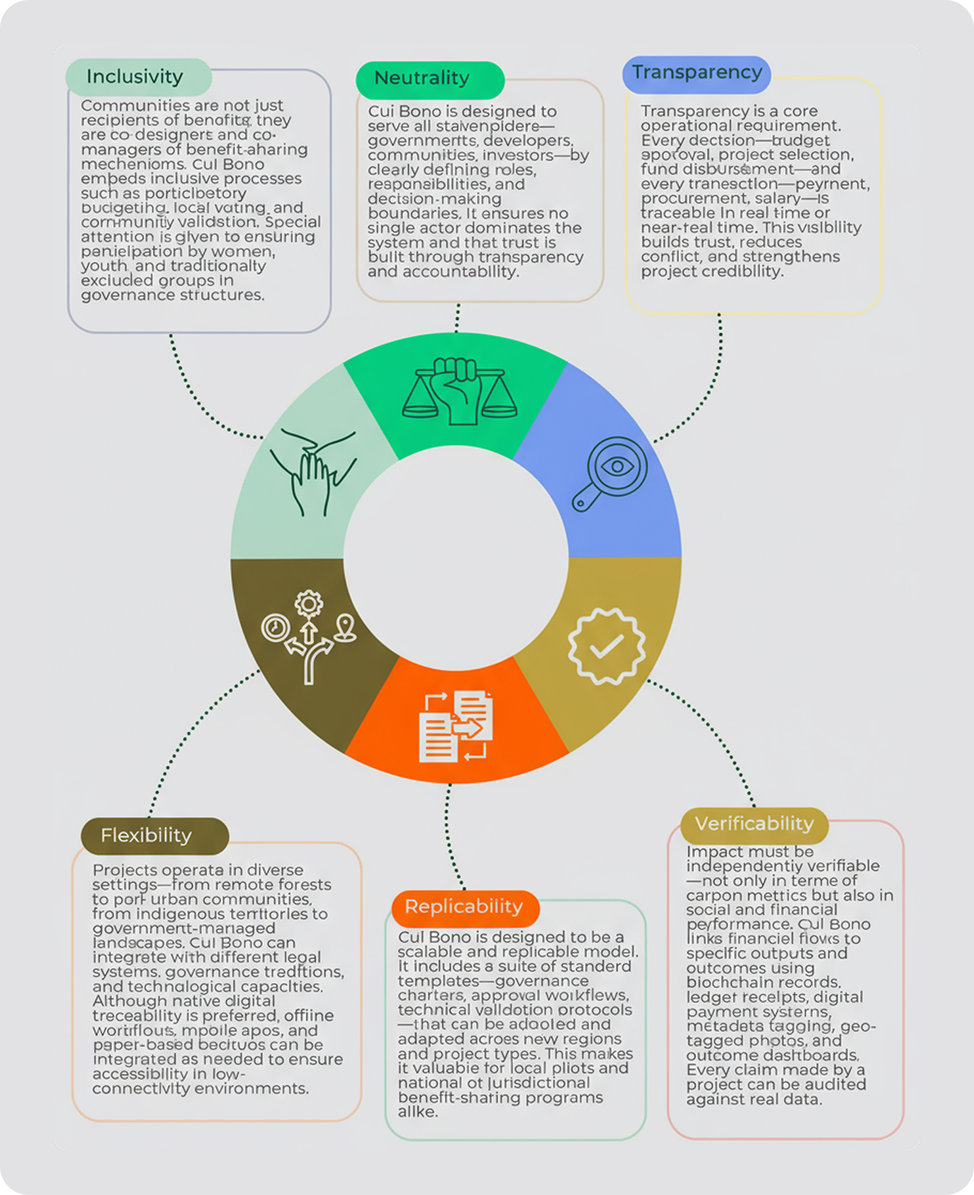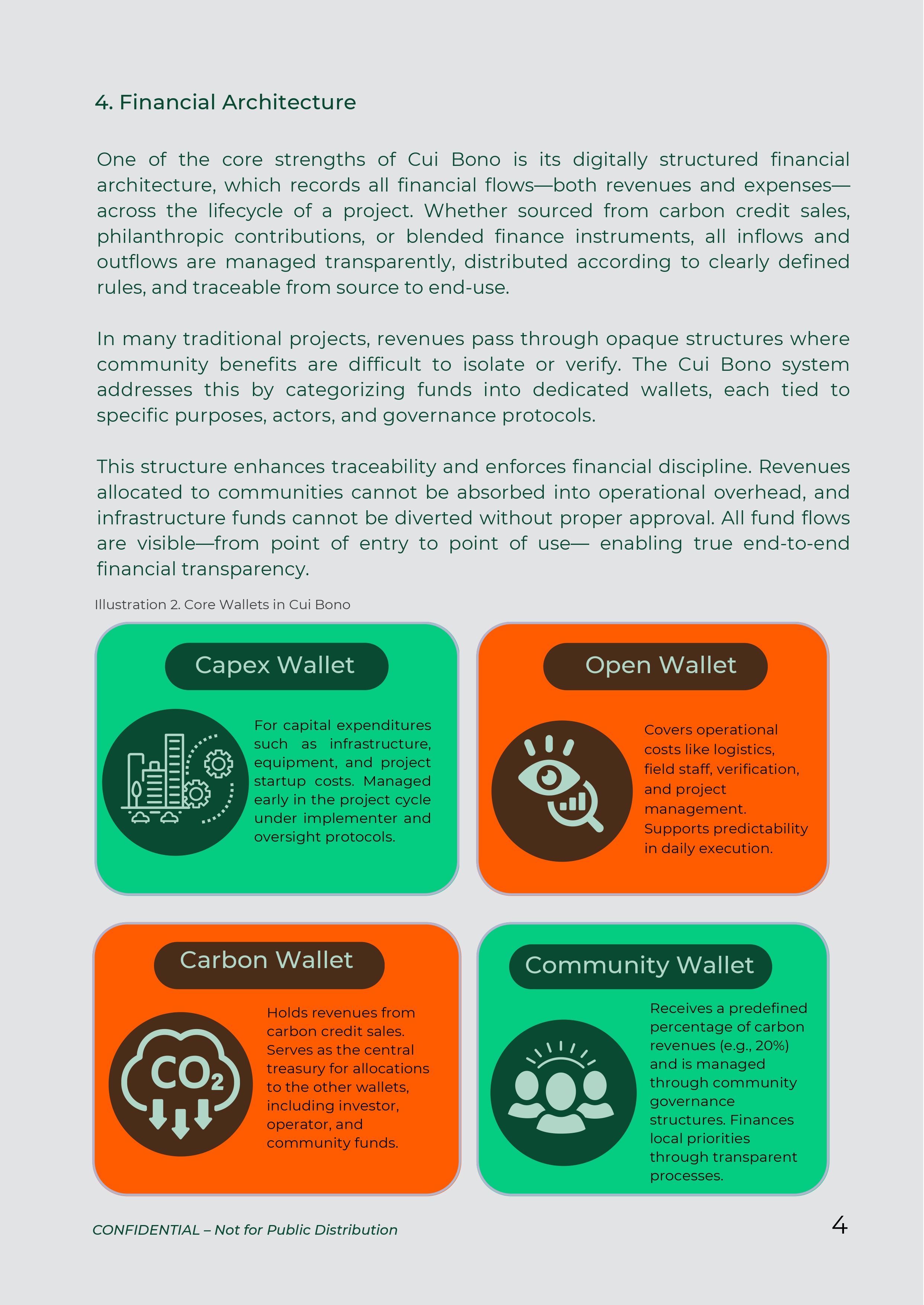 Cui Bono structures all carbon revenues into transparent digital wallets, each with clear governance rules and audit-ready records. Communities, developers, and investors can trace every dollar from source to impact.